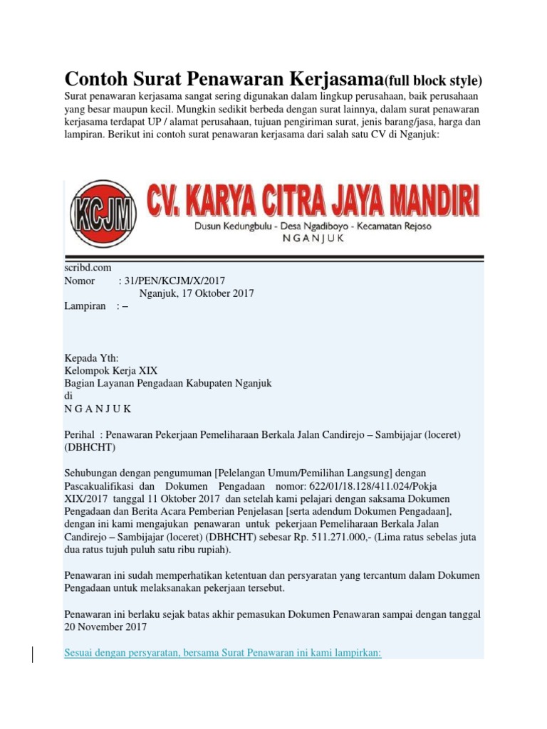 Kumpulan contoh surat penawaran mulai dari surat penawaran resmi, jasa, barang, kerjasama berserta dengan pengertian dan struktur surat dalam menjalankan suatu bisnis atau usaha, melakukan penawaran barang atau jasa merupakan salah satu hal yang biasa dilakukan dalam hal ini. Surat penawaran ini biasanya surat ini berisi informasi tentang perusahaan penjual dan jasa atau barang yang diproduksi agar demikian pembahasan mengenai surat penawaran kerjasama antar mitra dibidang jasa ekspor impor. Contoh surat penawaran kerja sama franchise. Jenis surat ini tergolong masih merupakan salah satu jenis surat. Surat penawaran termasuk salah satu contoh surat resmi.