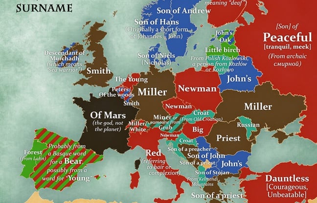 However, in some languages the nobiliary particle is the same as a regular prepositional particle that was used in the creation of many surnames.in some countries, it became customary to distinguish. Alias surnames or dit names in some areas of france, a second surname may have been adopted to distinguish between different branches of the same family, especially when the families remained in the same town for generations. 250 french surnames or last names with meanings: A dit name is essentially an alias, or alternate name, tacked on to a family name or surname.dit (pronounced dee) is a french form of the word dire, which means to say, and in the case of dit names is translated loosely as that is to say, or called.therefore, the first name is the family's original surname, passed down to them by an ancestor, while the dit name is the name the person. French prefixes, meaning 'son of', is attached to the beginning of a given name:
